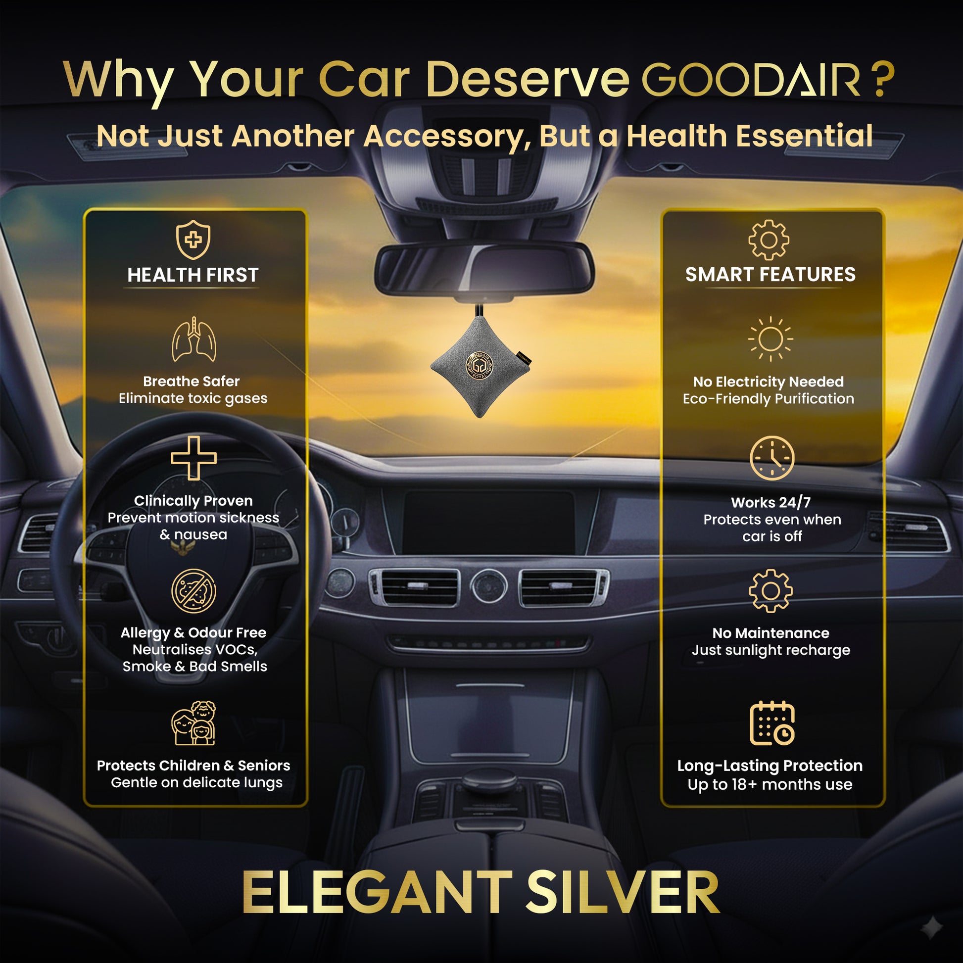 GOODAIR 2.0 Premium Non-electric Car Air Purifier | Elegant Silver