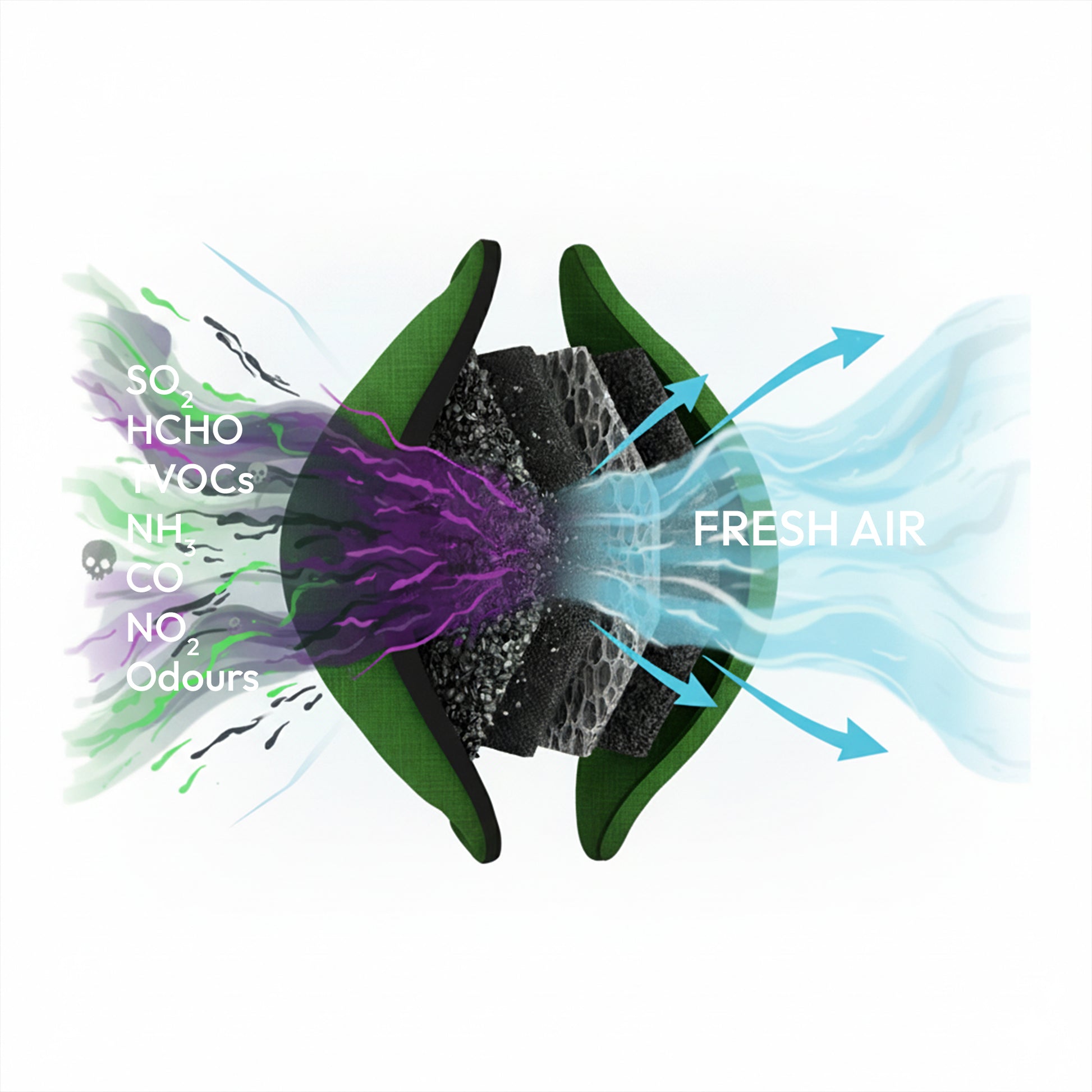 This advanced purifier neutralizes harmful gases such as carbon monoxide, nitrogen dioxide, sulfur dioxide, ammonia, and TVOCs (Total Volatile Organic Compounds), ensuring the air inside your car is free from invisible, harmful toxins.